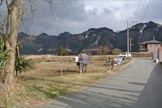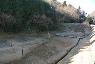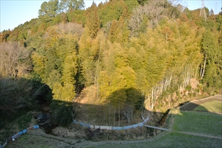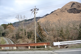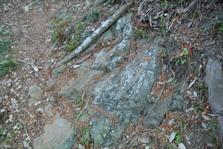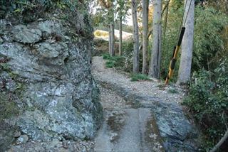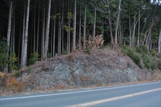 ここは中央構造線とは無関係(のはず)ですが、石垣の延長線上に丘陵が続いています。ここにも未知の断層があるのでしょう。