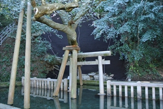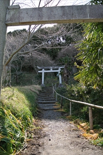 この参道の先の北浦に鳥居が建っています。このラインにいったい何があるのか?