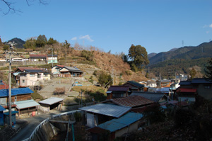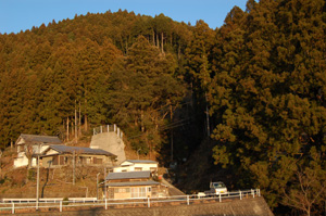 町へ降りる坂道で住民のおばあさんに会いました。中央構造線を調べていると告げると、東北の地震の時は揺れに気付かなかったとか、昔は田んぼだったのに(断層の上に)町が出来たとか、教えてくれました。