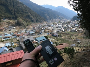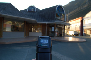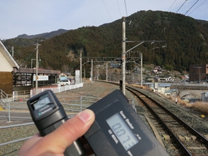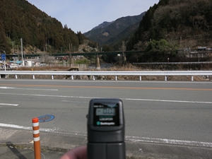 まず中部天竜駅で途中下車し、駅西の橋を渡って町を南下し、つり橋を渡って前回訪れた緑色の崖まで、ぐるっと一周測定しながら歩いてみました。