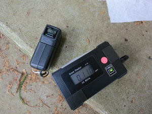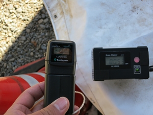 もうお気づきでしょうが、測定器は地面に向けなくても、全方位でほとんど電位は変わりませんでした。電位の中心が地下深くにあるとすると説明がつきます。距離5cm換算の測定器なので、正確な電位は不明ですが、以後も電位計の指示通りに記述することにします。