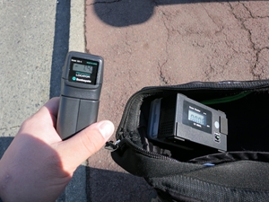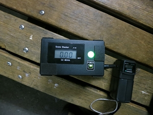 ホームのベンチもそこそこの高濃度。電位計はあわてて取り出したので静電気の影響があるかもしれません。