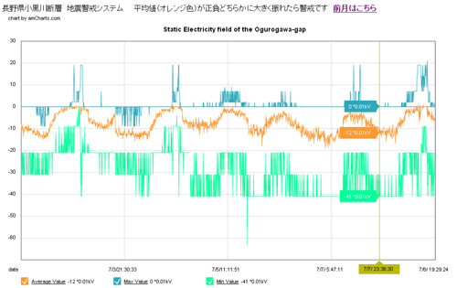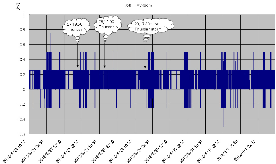 こうして見ると、平均値(オレンジ色)は結構変動しています。0〜−0.2kV辺りなので平穏ですが。これが跳ね上がったら要注意です。