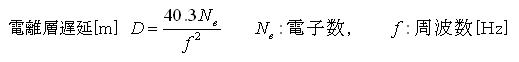 同時に受信した二つの時刻のデータからズレがわかり、上の方程式から電子数が導かれます。でも電波経路上の全電子数が分かるだけで、電離層のみの電子数とは限りません。