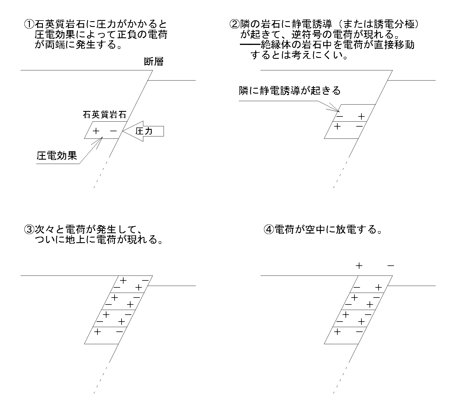 でも岩石に静電誘導?誘電分極に電荷があるのか?など、いろいろ疑問はつきません。