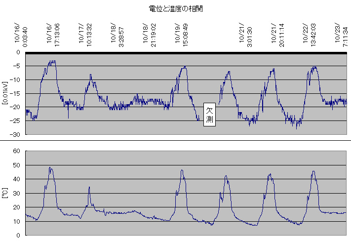 自転と公転の関係はともかく、電位の変化はやはり温度変化のせいでした。