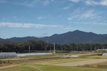 豊川の土手に上がると、本宮山と砥鹿神社の杜がよく見えます。