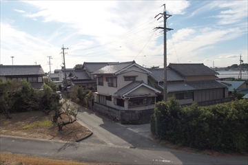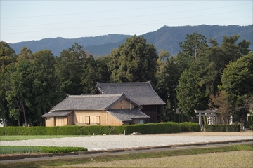 右奥に神社が見えます。