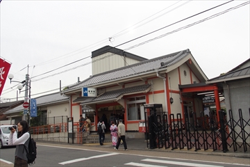 駅舎も神社風。