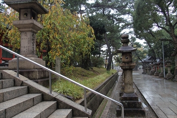 神社の前を西に向かいます。