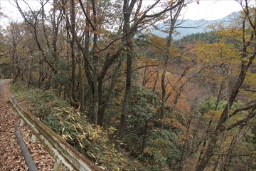 ようやく急こう配が終わり、林道が続いています。