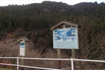 川に沿って進むと案内看板が見えます。