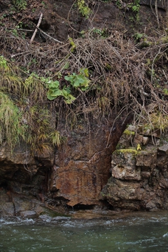 しばらく進むと、川の対岸が岩壁になっています。