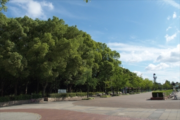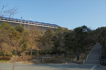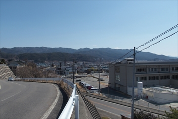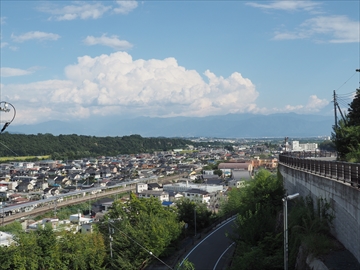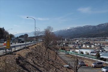 近くの公園から覗くと、中央道は荒神山を切り通しています。