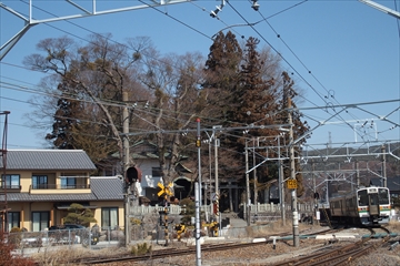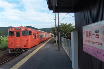 蘇民将来符のお守りがあるよなと思っていたら、神社のすぐ隣を福塩線の電車が走っていきます。